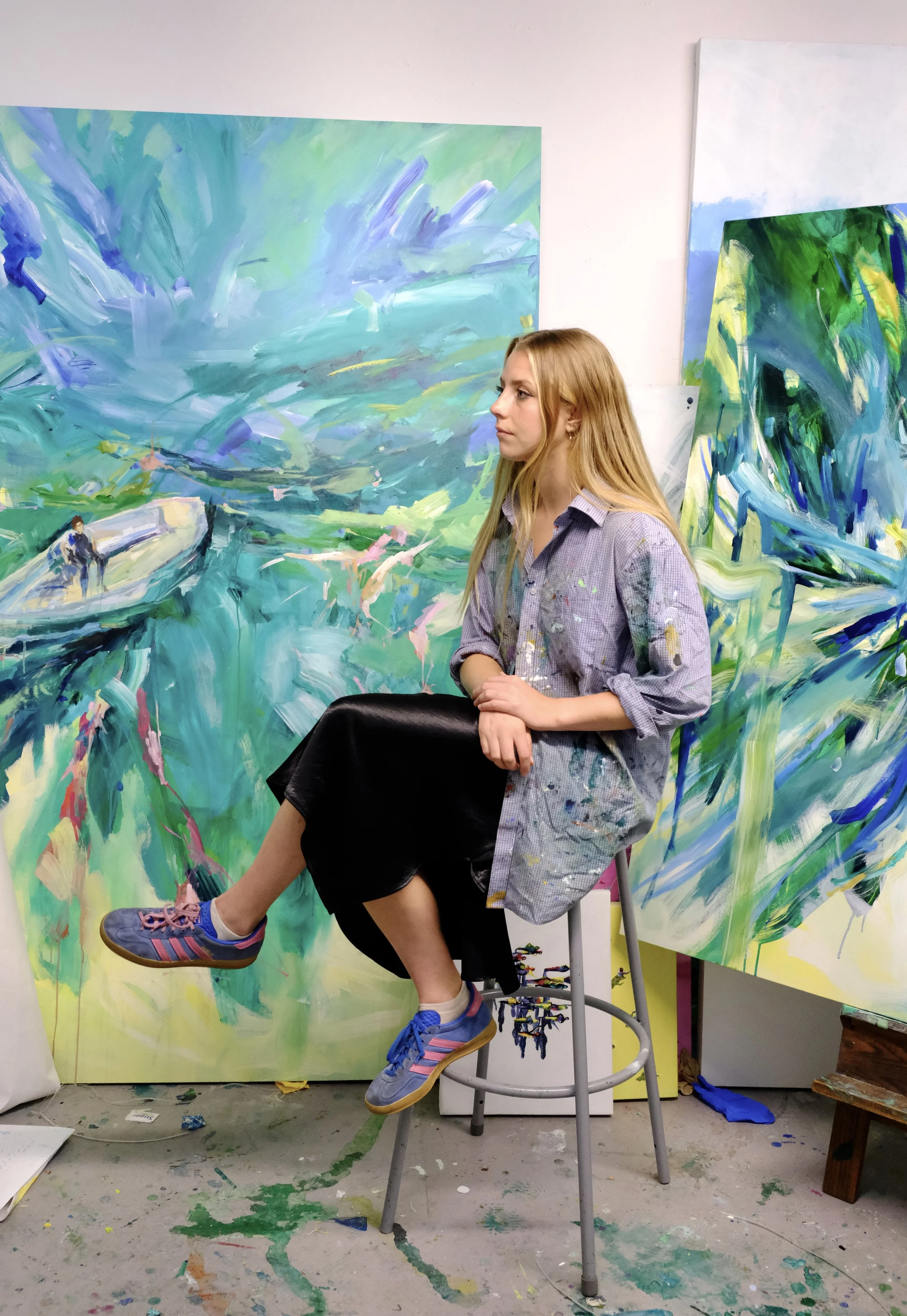 Talia Sullivan is an emerging artist, ( b. 2001, Devon UK) based in Savannah, GA. In her studio practice, Sullivan explores the relationship between humanity and the vastness of the landscape. Her art often features anonymous figures seamlessly integrated into expansive natural settings. Through her work, she seeks to evoke a sense of wonder and reverence for the world around us. Talia Sullivan has been exhibited in Savannah, Atlanta, Richmond and London. She is currently persuing an MFA in Painting and Printmaking at the Savannah College of Art and Design.